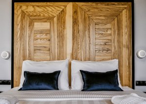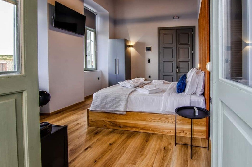 Η στιλάτη διακόσμηση συνδυάζεται με αγνά υλικά από το χειροποίητο δρύινο ξύλινο πάτωμα, το μασίφ κρεβάτι και το γεωμετρικό κεφαλάρι του κρεβατιού ως το λευκό μαρμάρινο πλακάκι του μπάνιου, προσδίδει άνεση και ατμόσφαιρα πολυτέλειας.