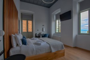 Tο ευρύχωρο και κομψό υπνοδωμάτιο των 25 τετραγωνικών μέτρων έχει την πιο όμορφη θέα του Ναυπλίου, απευθείας στο κάστρο Μπούρτζι. Ανοίγοντας τα παράθυρα ή κάθοντας στο πλαινό μπαλκόνι του δωματίου, αγναντέψτε το γαλάζιο του ουρανού και του Αιγαίου ταυτόχρονα.