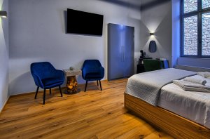 Η εντυπωσιακή πέτρα που είναι εμφανής στους τοίχους, το μπάνιο φτιαγμένο από μάρμαρο και γρανίτη, συνδυάζοντας το χειροποίητο δρύινο κρεβάτι και το πάτωμα, προσδίδουν μία αίσθηση ικανοποίησης και άνεσης ταυτοχρόνως.