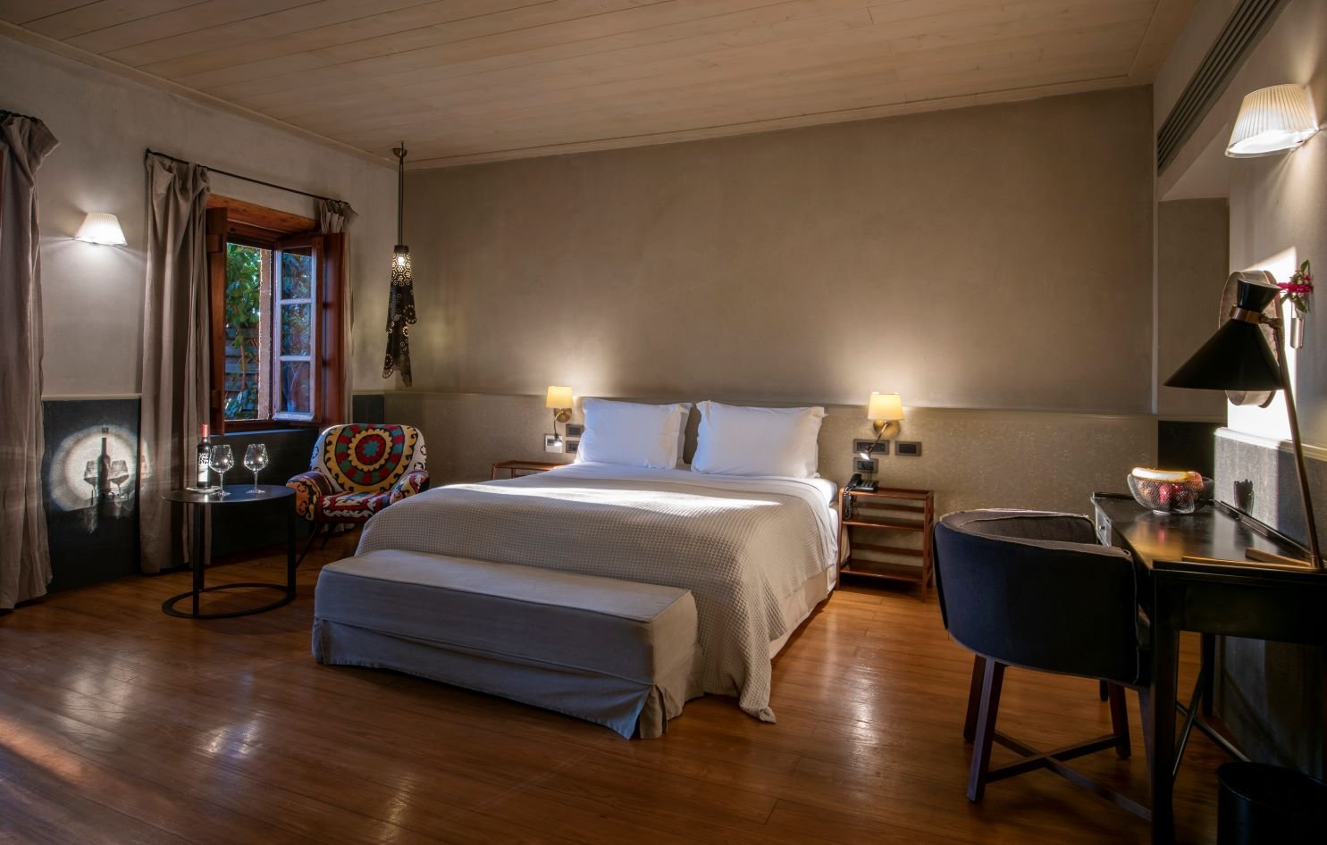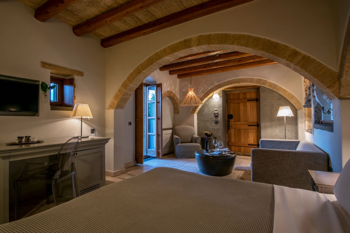 Τα μοναδικά δωμάτια και ατμοσφαιρικές σουίτες στο ιστορικό αρχοντικό έχουν σχεδιαστεί με ιδιαίτερη άποψη και συνδυάζουν παραδοσιακές λεπτομέρειες με στοιχεία σύγχρονης αισθητικής, προσφέροντας ζεστή και φιλόξενη ατμόσφαιρα. Όλα είναι διαφορετικά μεταξύ τους, ενώ τα περισσότερα παρουσιάζουν ενδιαφέροντα μορφολογικά στοιχεία, όπως βυζαντινούς θόλους, διατηρητέα τζάκια και ποικίλα χαρακτηριστικά που μαρτυρούν τους διάφορους πολιτισμούς που διαμόρφωσαν το αρχοντικό.