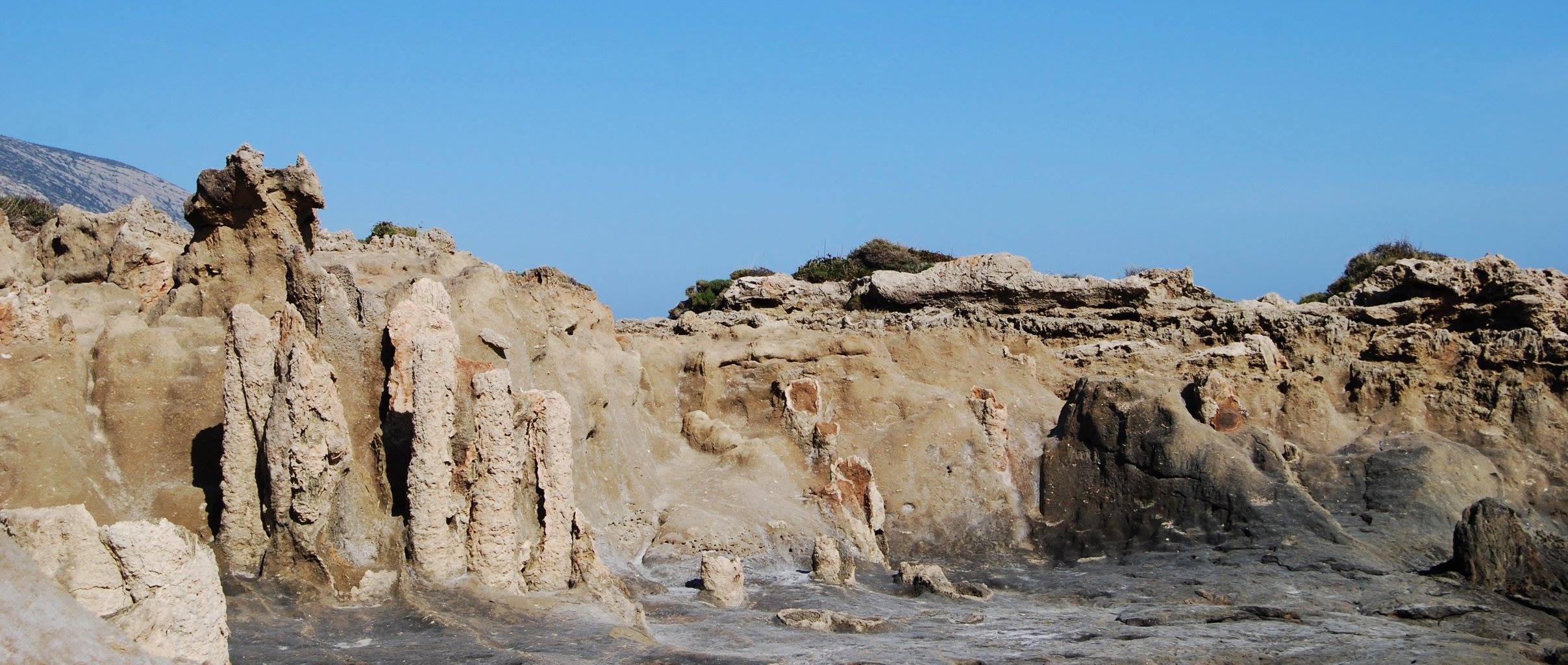 Στο τέρμα της διαδρομής, μας περιμένει μια ακόμα από τις μεγάλες εκπλήξεις της περιοχής: Το φαντασμαγορικό απολιθωμένο φοινικόδασος του Αγίου Νικολάου, ένα μοναδικό στην Ευρώπη γεωπάρκο εκατομμυρίων ετών, πλάι στην παραλία της Αγίας Μαρίνας.