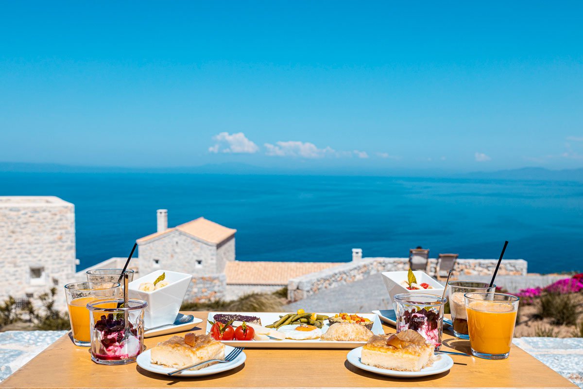 Επιβεβαιώνω έχω μόλις δοκιμάσει μια καταπληκτική ομελέτα φούρνου με μανιάτικα λουκάνικα, σπιτική μηλόπιτα, φρεσκοζυμωμένο ψωμί με λιαστή ντομάτα και γραβιέρα Μάνης, ένα αριστοτεχνικό ρυζόγαλο και μια φρουτοσαλάτα που μοσχοβολά καλοκαίρι.